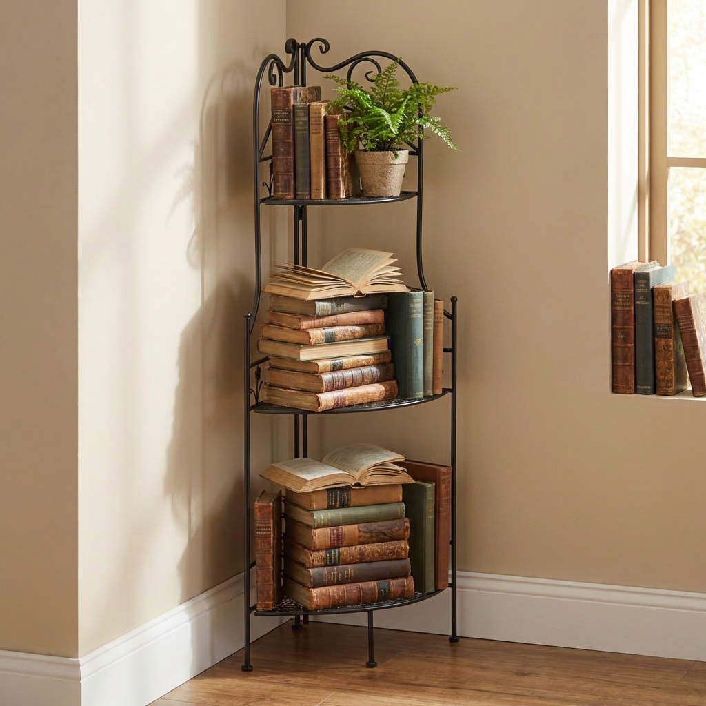 Этажерка угловая Secret de Maison Селин / Celine — это практичный и компактный металлический стеллаж для хранения, который идеально подходит для рационального использования пространства в доме, на кухне, в ванной, на балконе или даче. Благодаря угловой конструкции модель эффективно задействует свободные углы помещения, что делает её отличным решением для небольших квартир и ограниченных пространств.