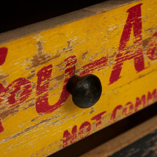 Оригинальный дизайн комода Secret de Maison 7-UP, выполненного в стиле лофт, позволит привлечь внимание и сделать яркий акцент на определенной зоне в интерьере. Металлический каркас, небольшие естественные дефекты, простота формы и нестандартное дизайнерское решение выгодно выделяют комод в интерьере. При всей простоте исполнения комод 7-UP является довольно вместительным и функциональным предметом обстановки, не требующим большого количества свободного места. Пять удобных выдвижных ящиков, стилизованных под ящики для напитков, позволят хранить огромное количество предметов. Эффект потёртости и признаки старины смотрятся изысканно, оригинально и придают особенную красоту изделию. Натуральная древесина манго, покрашенная краской и обработанная прозрачным маслом, проста в уходе и будет долгие годы радовать вас своим первоначальным видом. Модель прекрасно сочетается с мебелью из коллекции LOFT WOOD, поставляется в собранном виде.