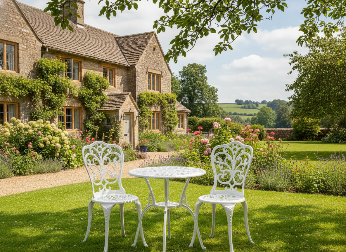Плавные витиеватые изгибы ажурных орнаментов столешницы и спинок стульев, выполненные вручную, придают мебели утончённость и особый шарм. Художественная ковка добавляет индивидуальности экстерьеру и гармонично вписывается как в классический, так и в прованский или винтажный стиль ландшафтного дизайна.