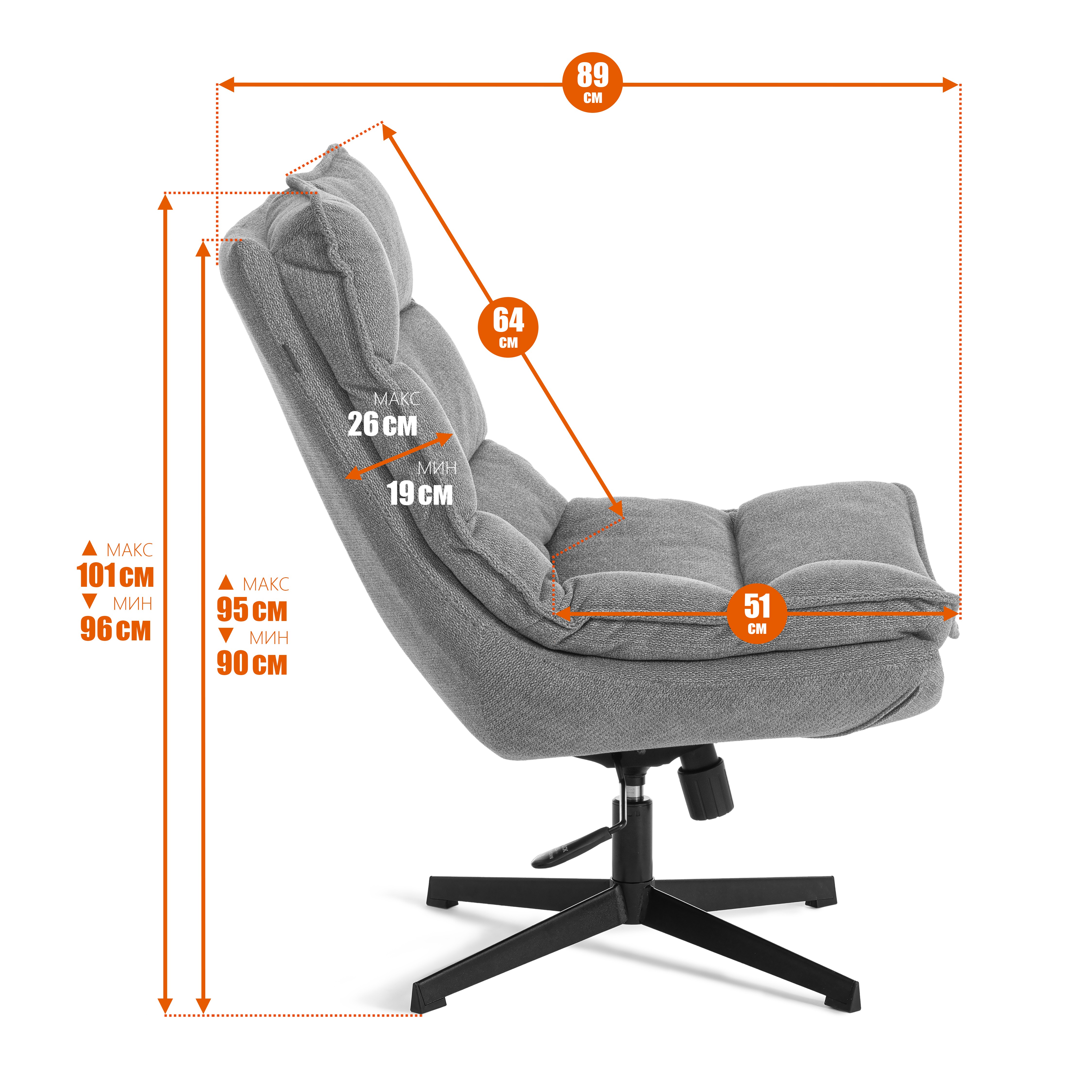 - Высота от пола до верхней точки подлокотников -