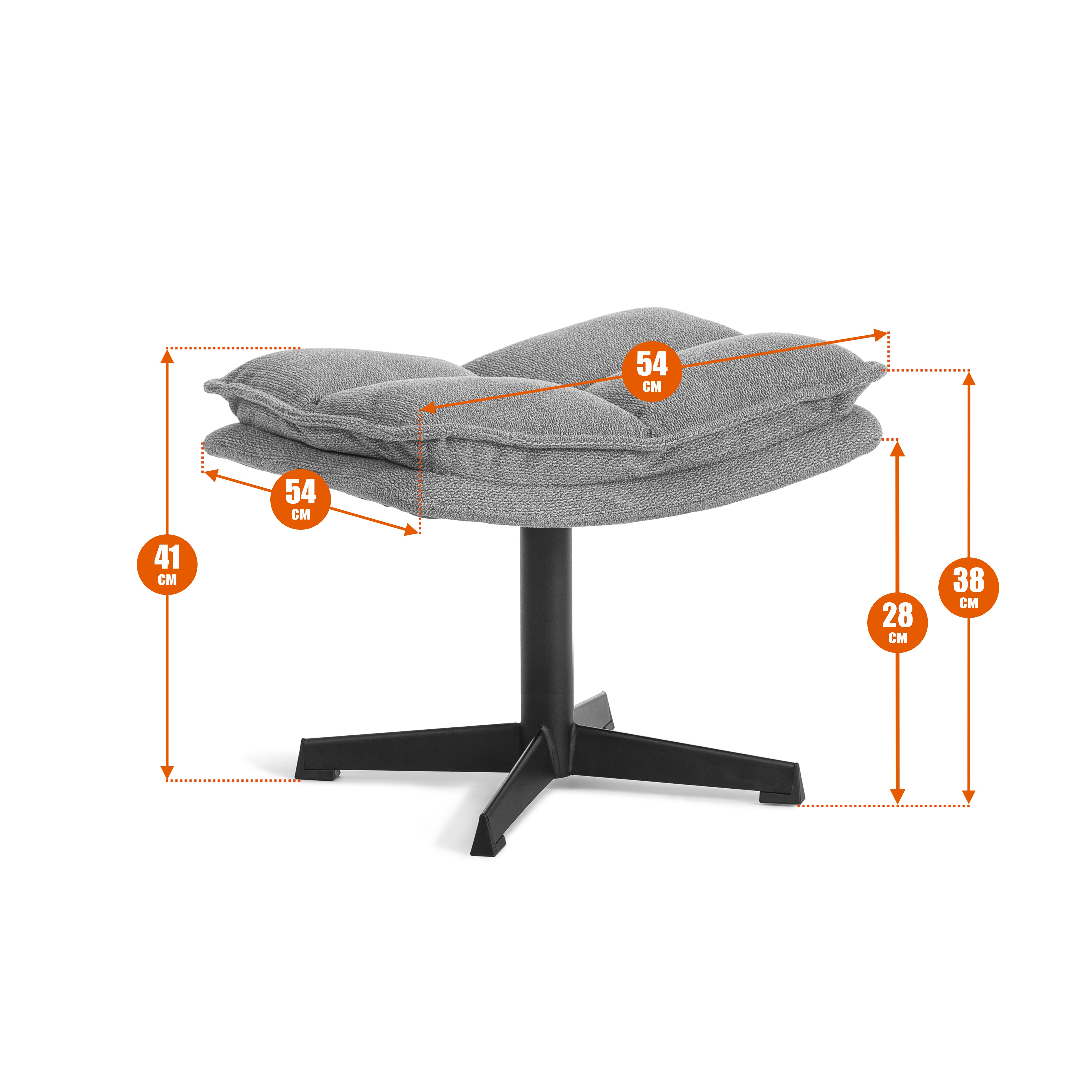 Дополните свой отдых с помощью этого стильного пуфа. Он создан для того, чтобы стать идеальной подставкой для ваших ног, превращая кресло в полноценное место для релаксации. Пуф также оснащен прочной металлической четырехлучевой крестовиной с треугольным сечением и пластиковыми подпятниками, обеспечивая устойчивость и защиту пола.