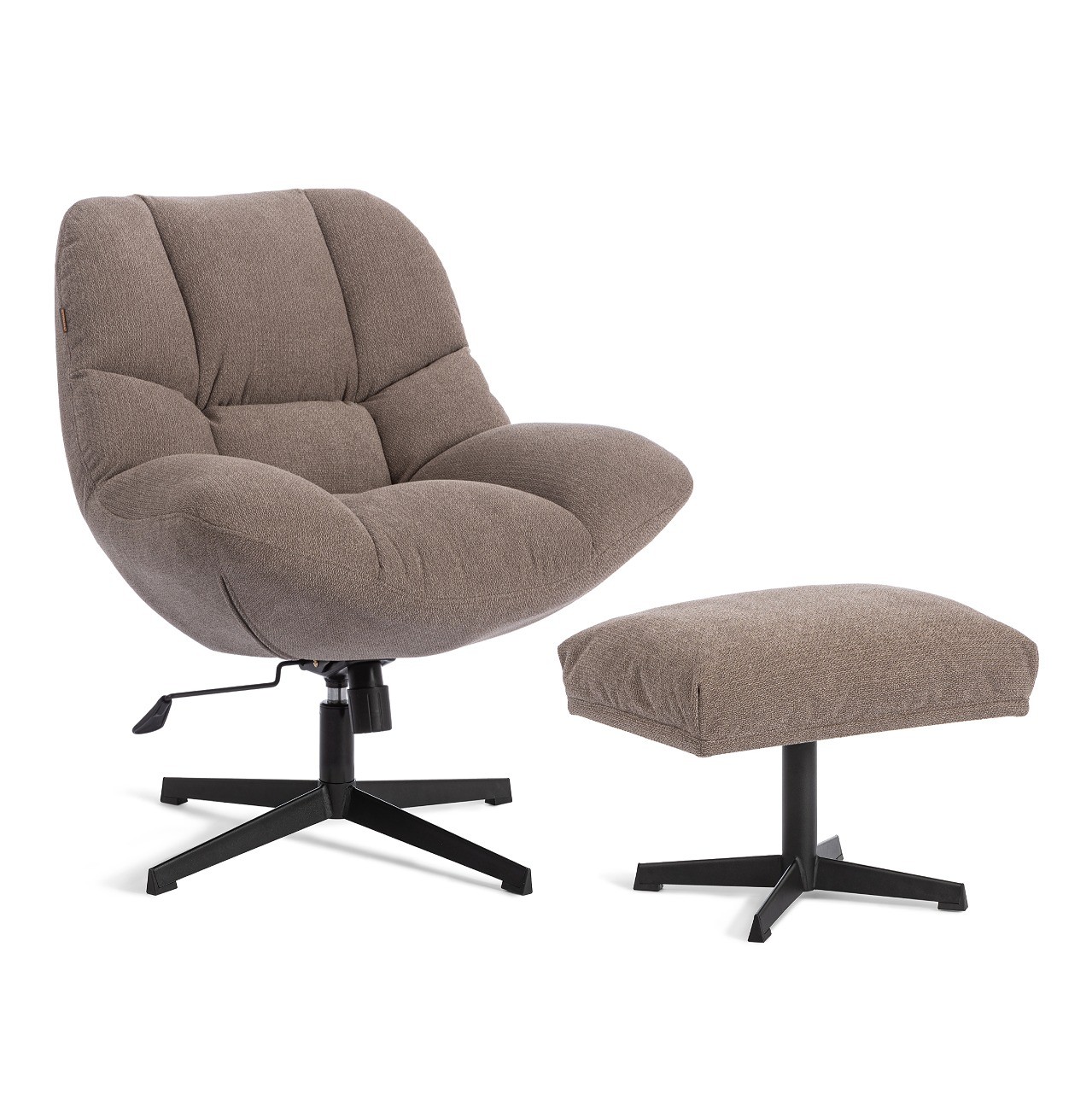 Дополните свой отдых с помощью этого стильного пуфа. Он создан для того, чтобы стать идеальной подставкой для ваших ног, превращая кресло в полноценное место для релаксации. Пуф также оснащен прочной металлической четырехлучевой крестовиной с треугольным сечением и пластиковыми подпятниками, обеспечивая устойчивость и защиту пола.