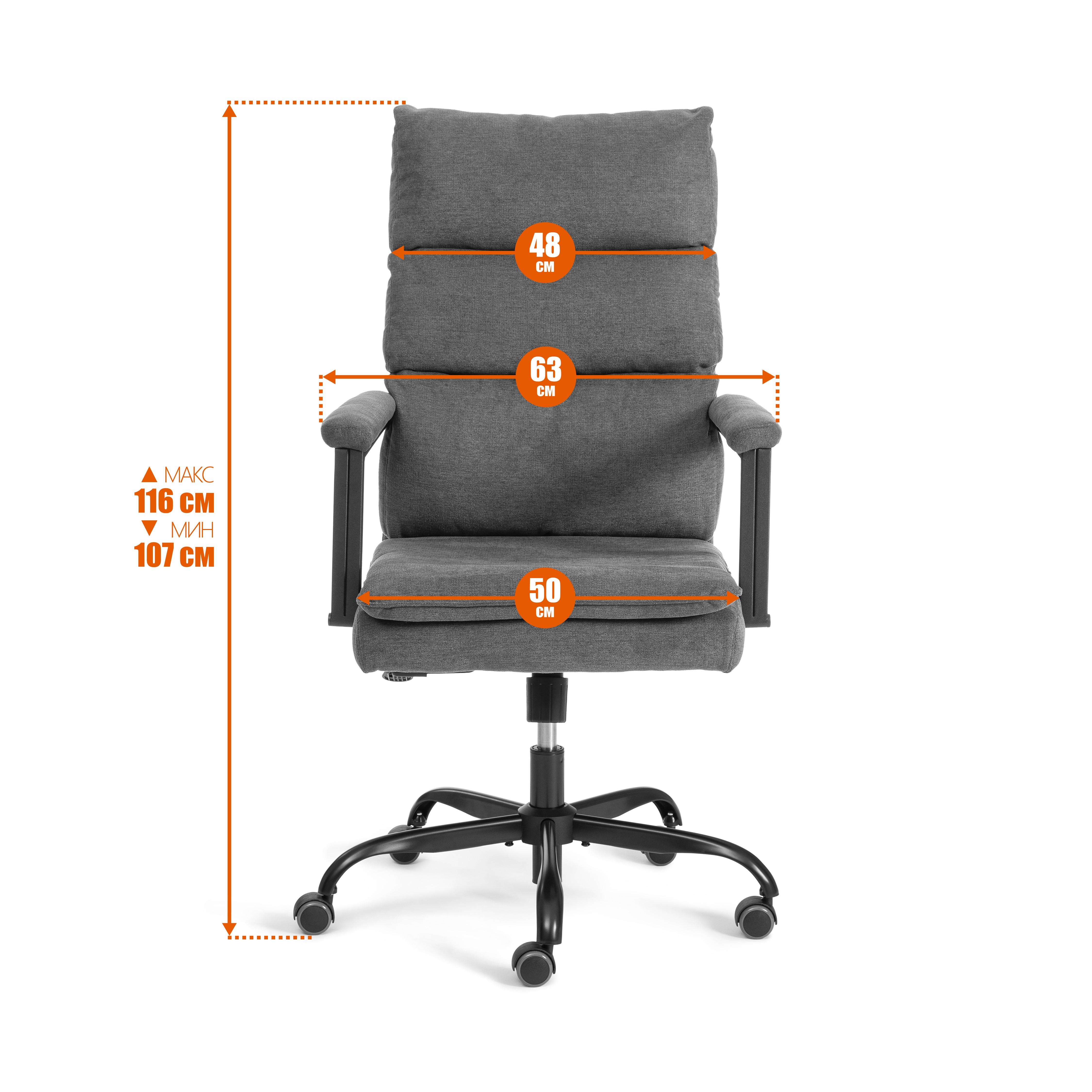 - Ширина кресла по внешним сторонам подлокотников 63