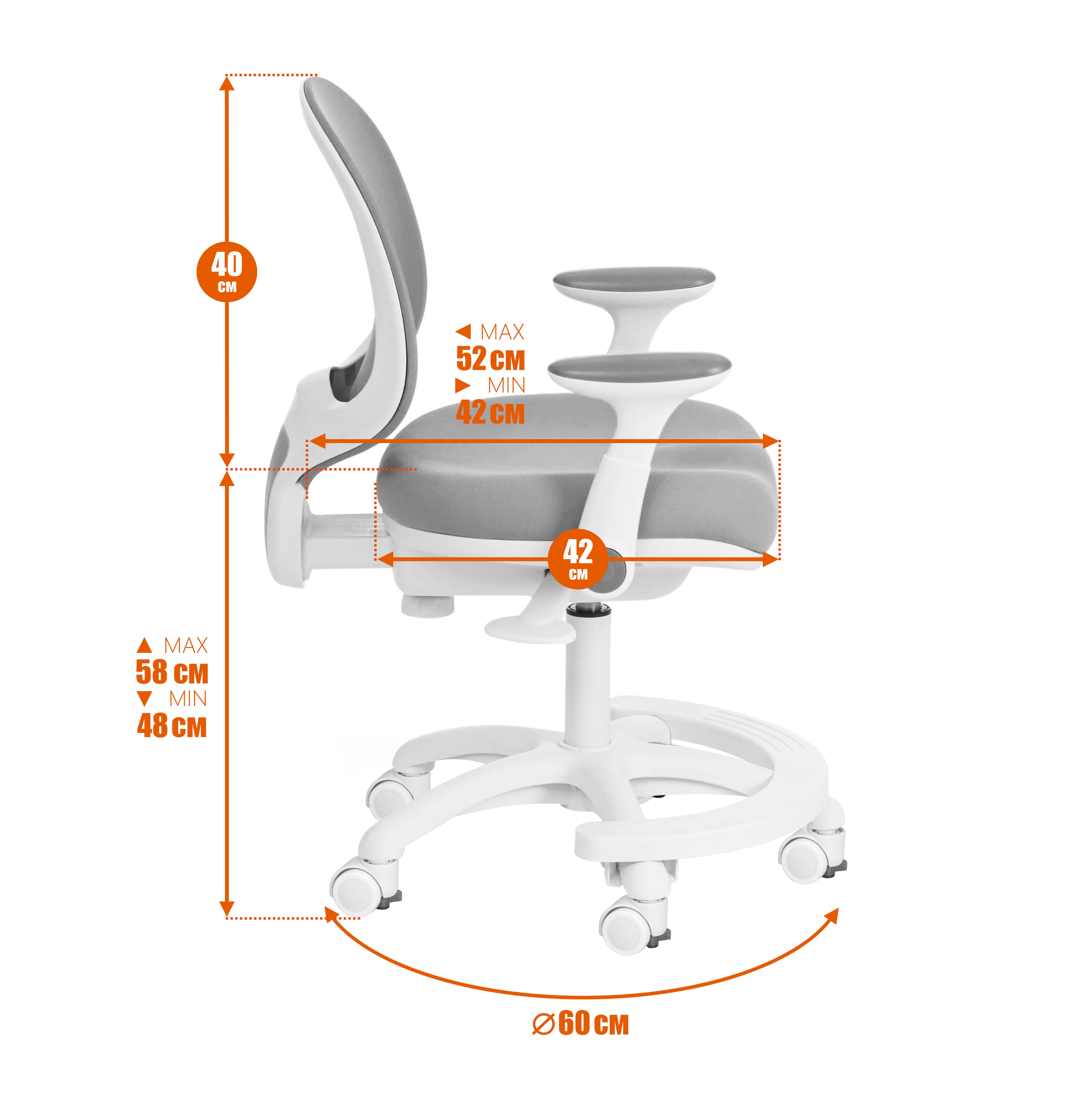 - Глубина сиденья в самой глубокой части (до спинки) 42-52