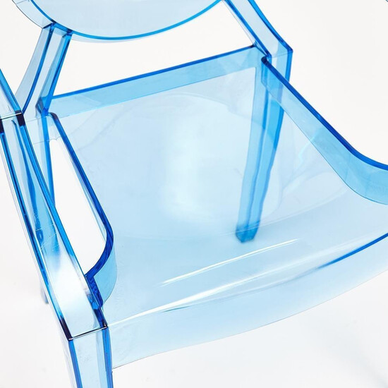 Стильное кресло MEDALION синего цвета из коллекции Modern выполнено в стиле прозрачного стула Louis Ghost, созданного гениальным французским дизайнером Филиппом Старком. Изящная форма, овальная спинка и изогнутые ножки в сочетании с прозрачным пластиком подчеркивают уникальность и универсальность кресла. Классические очертания и визуальная воздушность позволяют ему вписаться в любой стиль интерьера: от классического до стиля бохо. Благодаря прозрачной поверхности, отражающей свет, и визуальной легкости кресло станет идеальным решением для небольших помещений. Удобная спинка и высокие подлокотники обеспечат комфорт для продолжительного отдыха. Кресло изготовлено из прочного пластика синего цвета, оно устойчиво к механическим повреждениям и нагрузкам, выдерживает большой вес. Эта удобная, легкая модель способна стать отличным украшением террасы загородного дома, интерьера городской квартиры или веранды кафе. Кресло подойдёт для гостиной, для кухни, для ресторана или для веранды. Кресло поставляется в собранном виде.
