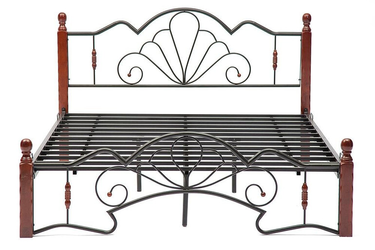 Представленная кованая кровать, изготовленная с применением металла и гевеи (каучуковое дерево), способна дополнить интерьер любой спальной комнаты.