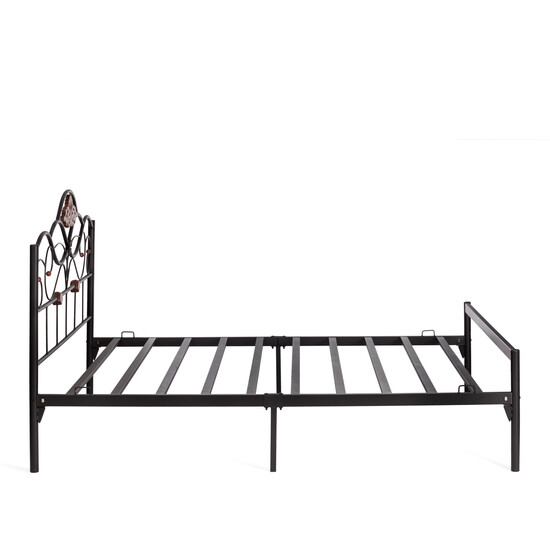 Двуспальная кровать FEDERICA (Queen bed) из Малазийской коллекции станет прекрасным дополнением в интерьере вашего дома. Изящные черты, кованые элементы, декоративные узоры помогут создать неповторимый образ спальне, гостевому пространству или комнате подростка. Надежный устойчивый каркас модели изготовлен из прочного металла, не теряющего своего первоначального вида на протяжении долгих лет. Декоративный узор на изголовье кровати и оригинальные наконечники, выполненные из массива гевеи, продемонстрируют индивидуальный вкус владельца и его состоятельность. Крепкие ламели сделаны из металла, что придает модели прочность, надежность и стойкость. Безопасные рейки с хорошим ортопедическим эффектом устойчивы к внешним воздействиям, не деформируются, не теряют своих свойств со временем, обеспечивают удобство и комфорт во время длительного отдыха. Двуспальная кровать черного цвета в сочетании с деревянными элементами цвета красный дуб отлично впишется в интерьер любого помещения, добавит ощущение роскоши и великолепия как загородному дому, так и городской квартире. Эксклюзивная модель впечатлит даже самых требовательных клиентов своим уникальным внешним видом, эксплуатационными качествами и длительным сроком службы. Кровать поставляется в разобранном виде, необходима несложная сборка по прилагаемой инструкции.