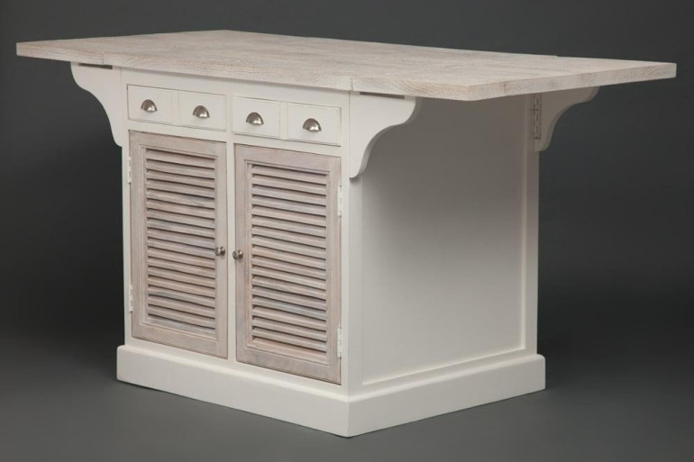 Изысканный кухонный остров Secret de Maison из коллекции RIVIERA, выполненный в средиземноморском стиле, добавит уюта и комфорта, в которые хочется вернуться еще не раз. Кухонный остров – этo современный способ сделать кухню более удобной, функциональной и стильной. Ручки с латунной отделкой, прикрученные старинными шурупами с прямым шлицем, и сочетание отбеленных фасадов, напоминающих ставни-жалюзи средиземноморских вилл, с корпусом из массива манго, покрашенным в белый цвет, подчеркивают красоту и благородство изделия. Внутри острова располагается восемь удобных выдвижных ящиков небольшого размера, специальное отделение для хранения бутылок и несколько отделений с полками – его дизайн продуман до мелочей. Боковые столешницы поднимаются, трансформируя остров в большой стол. Фактура натуральной состаренной древесины смотрится изысканно и оригинально. Модель изготовлена из массива дерева манго, финишное покрытие натуральным маслом подчеркивает природную красоту древесины. Обработанное по данной технологии дерево обладает повышенной прочностью, долговечностью и не требует специального ухода. Кухонный остров идеально сочетается с мебелью из коллекции RIVIERA, поставляется в собранном виде.