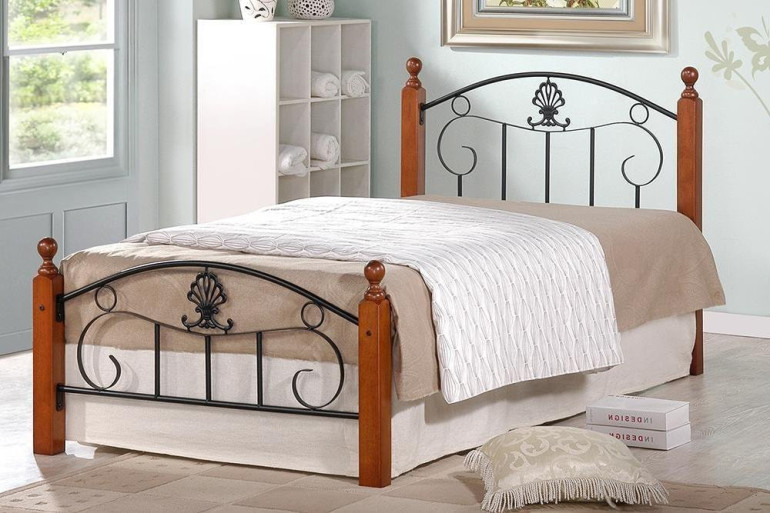 Представленная металлическая кровать, изготовленная с применением металла и гевеи (каучуковое дерево), способна дополнить интерьер любой спальной комнаты.