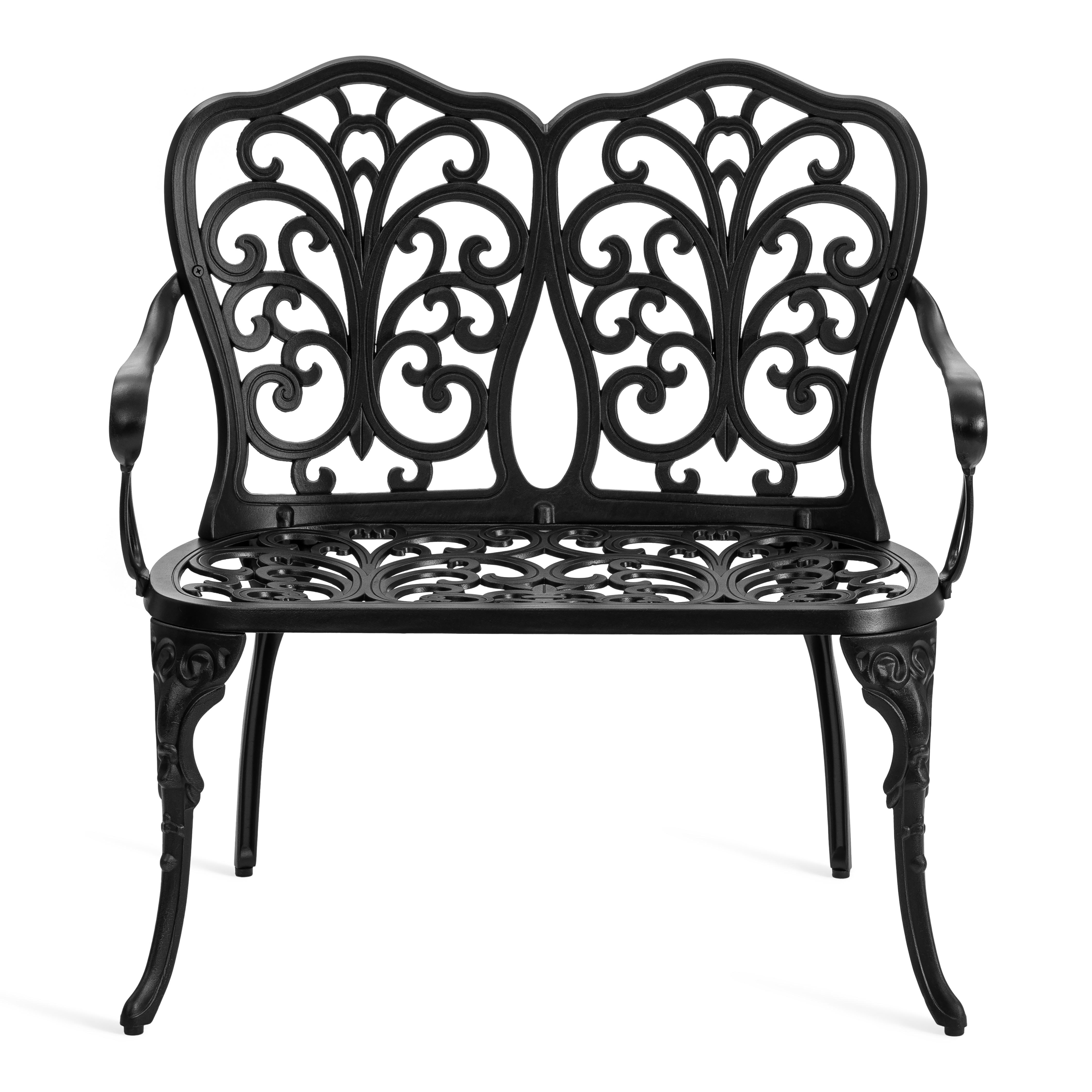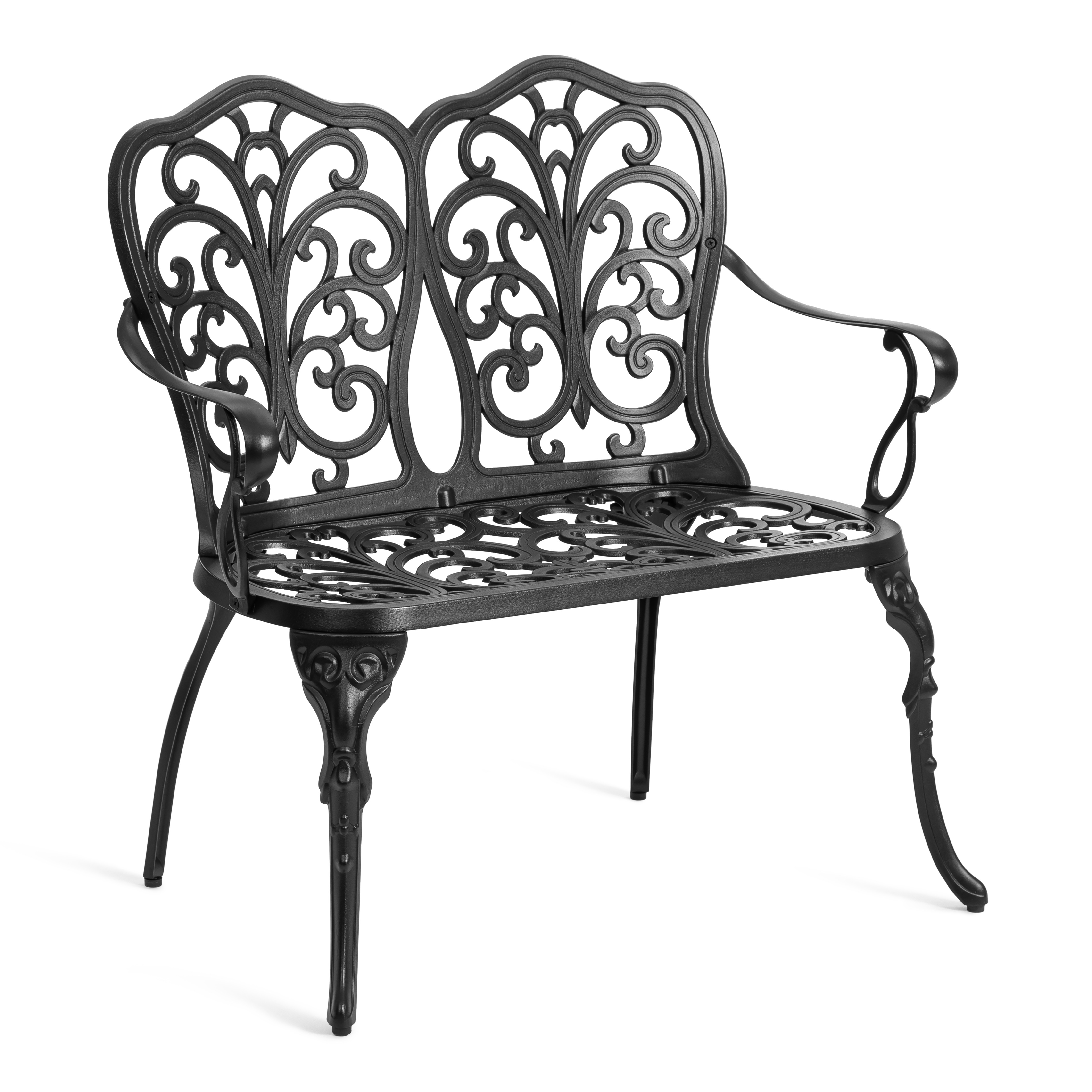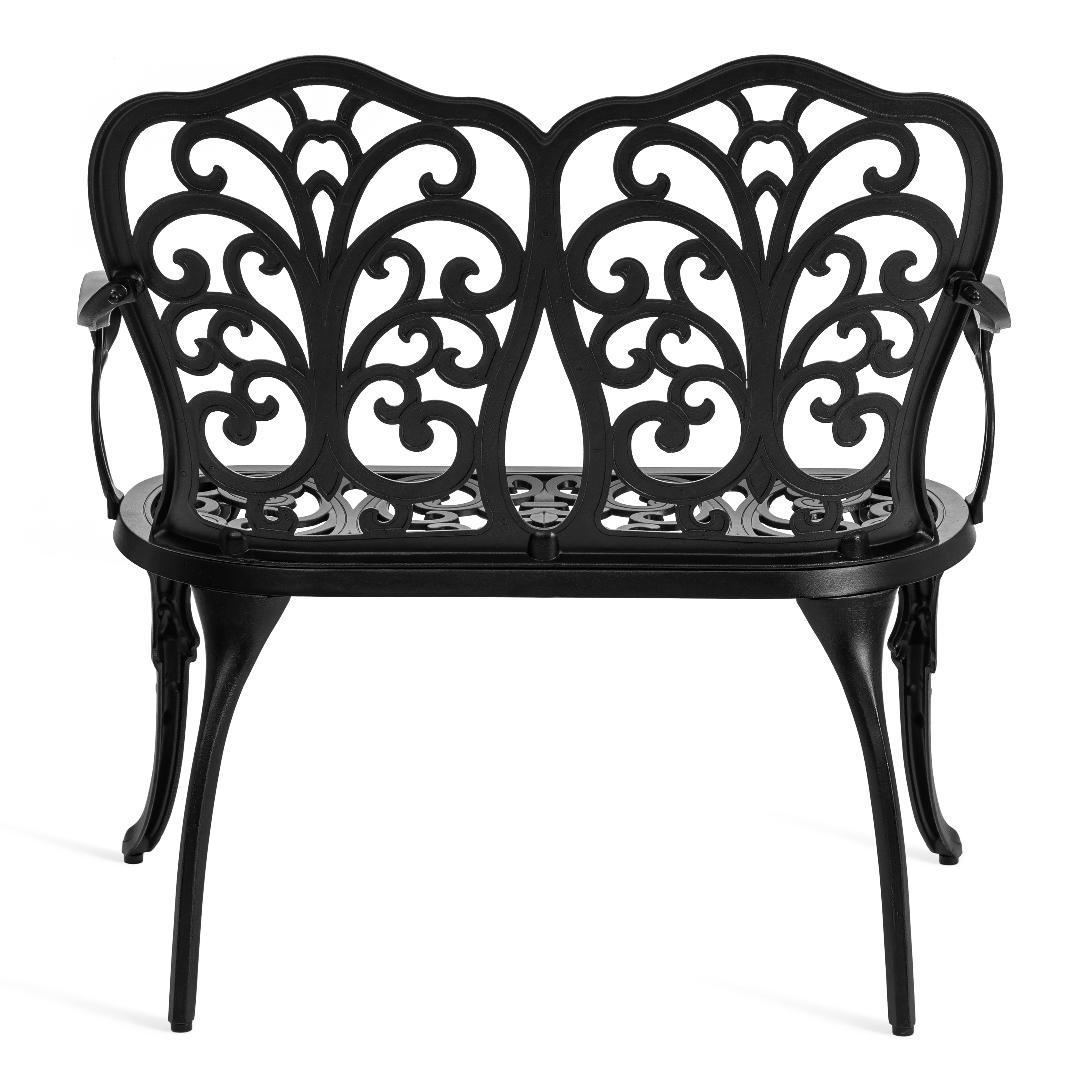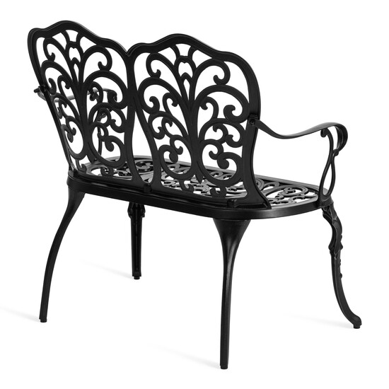 Плавные витиеватые изгибы кованых узоров создают неповторимый облик изделия, подчеркивая его визуальную лёгкость, грациозность и изысканность. Благодаря гармоничным пропорциям скамья выглядит элегантно и органично вписывается в ландшафтный дизайн в классическом или прованском стиле.