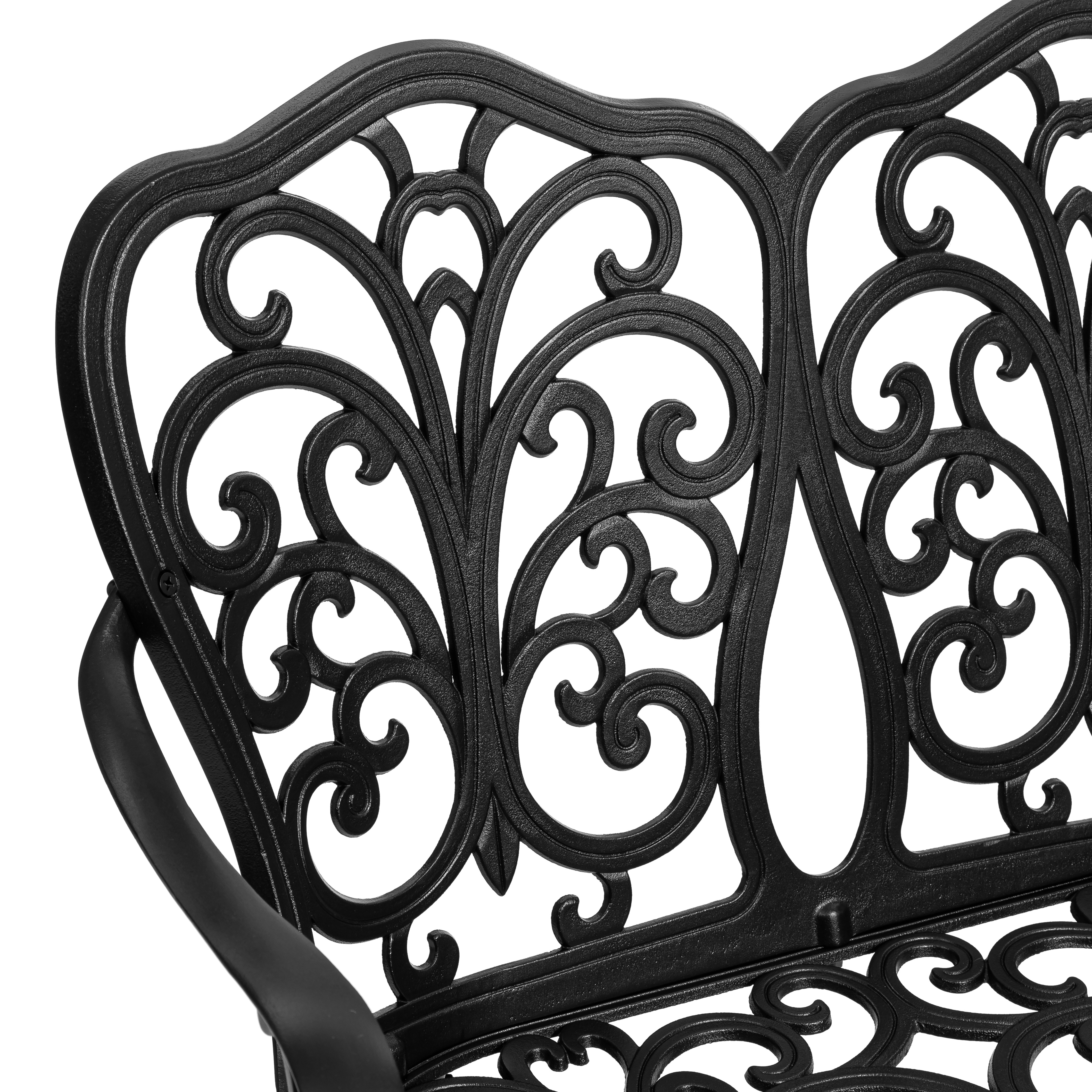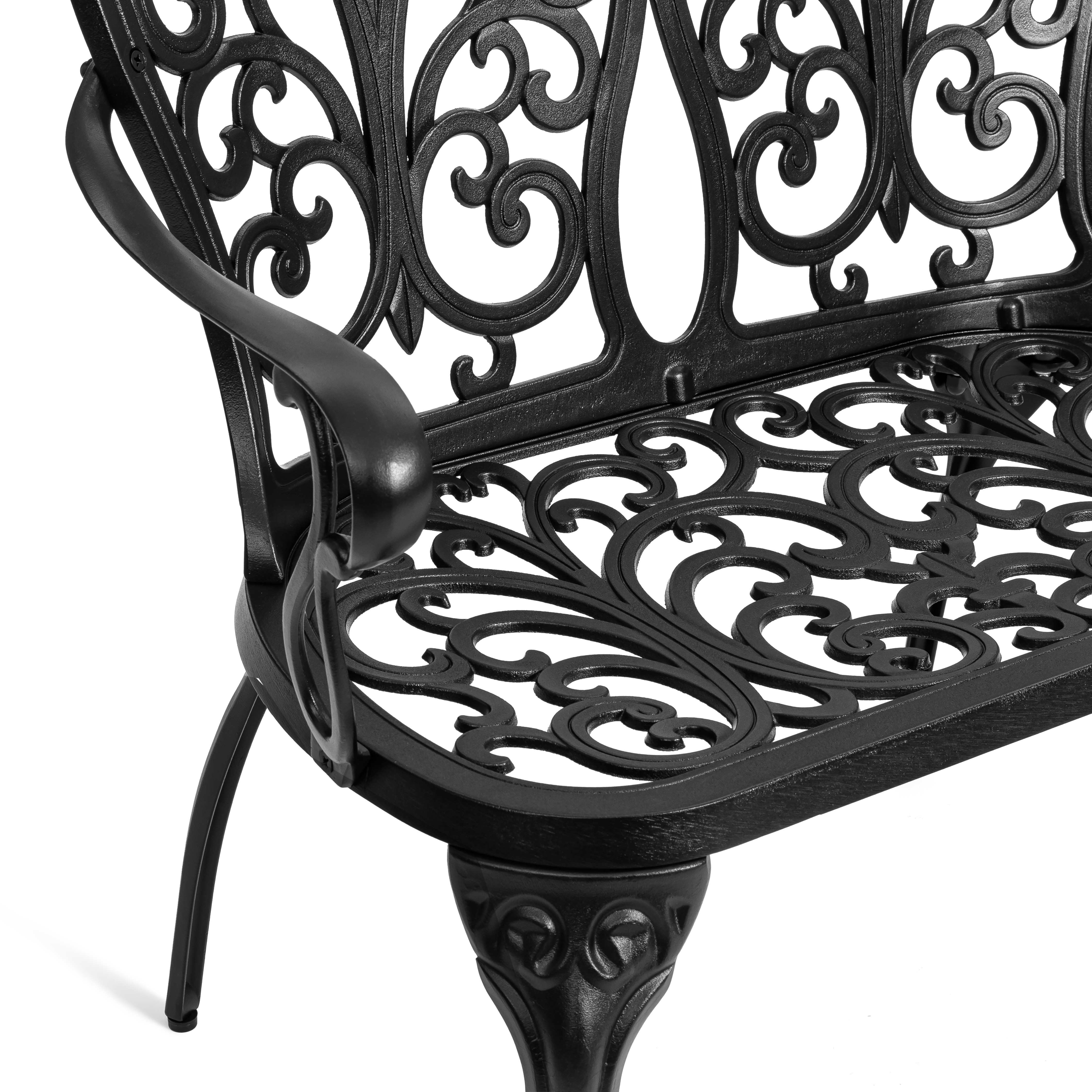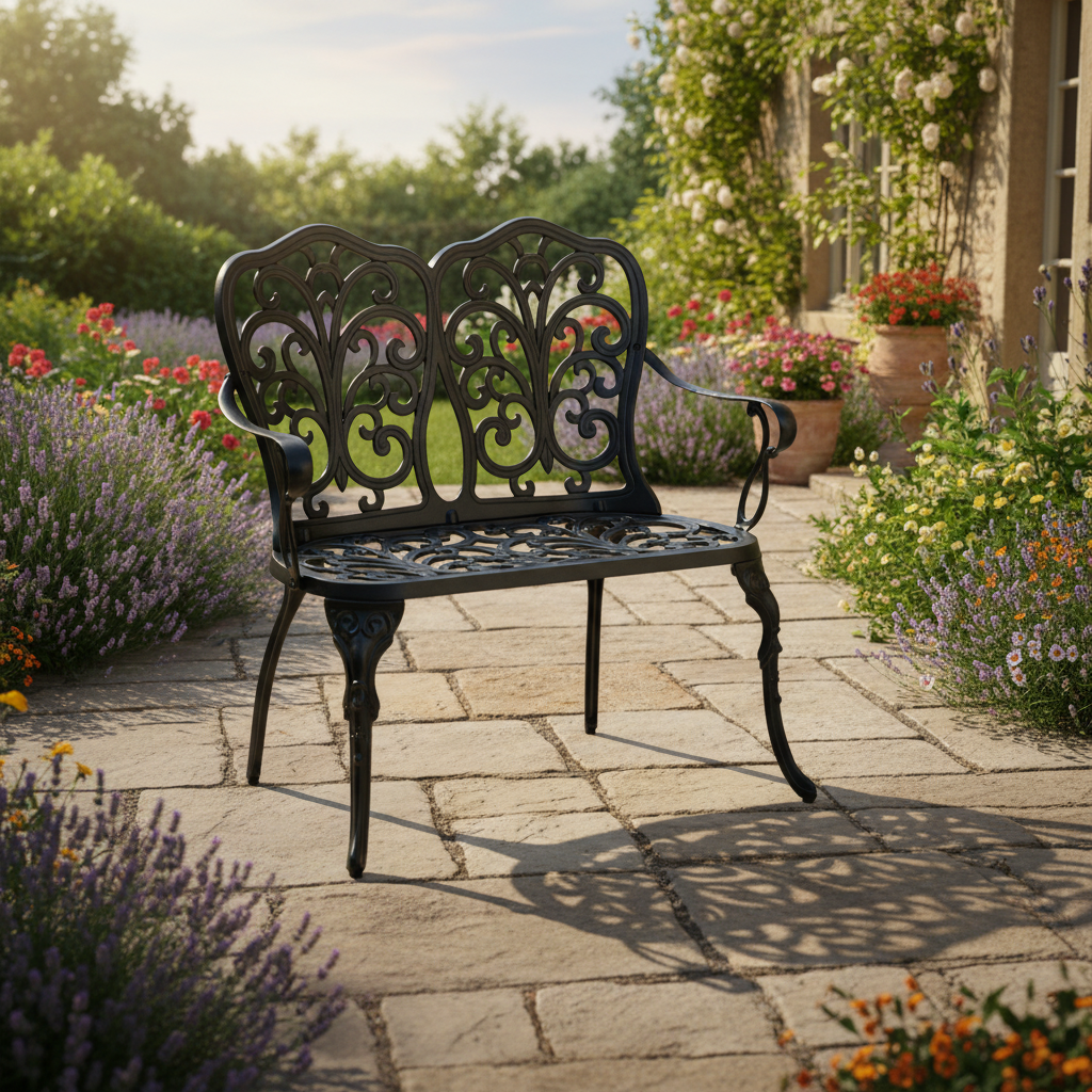 Скамья изготовлена из литого алюминия — прочного и долговечного материала, устойчивого к коррозии, перепадам температур и повышенной влажности. Конструкция выдерживает значительные нагрузки и не требует сложного ухода, сохраняя первоначальный внешний вид на долгие годы.