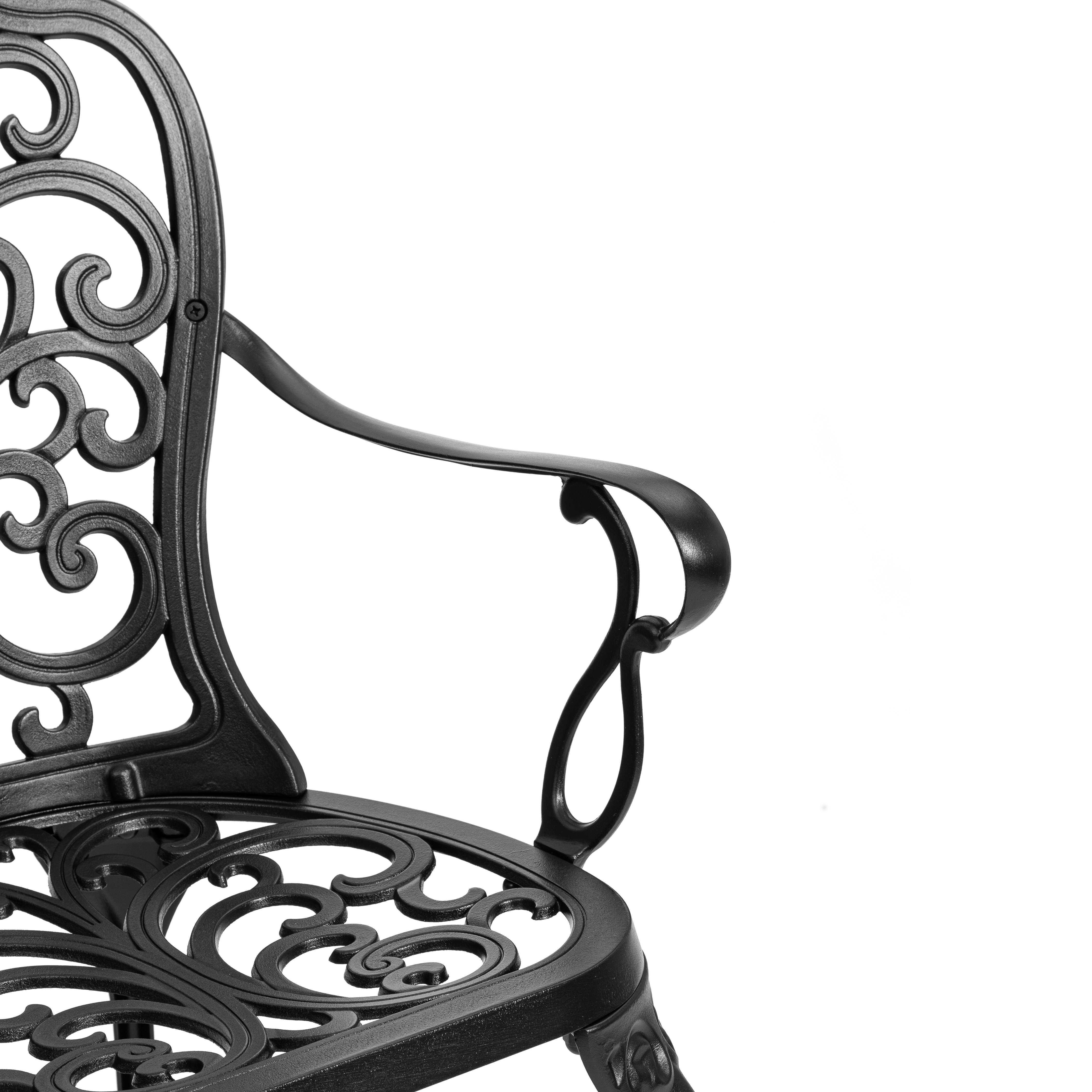 Преимущества скамьи Secret de Maison Symphonie/Симфония: прочный каркас из литого алюминия, устойчивость к влаге и температурным перепадам, изящный дизайн в стиле прованс, удобная спинка и подлокотники, долговечность и простота ухода.