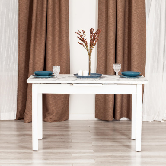 Раскладной стол ALIGERY из коллекции Modern сделает оригинальным и узнаваемым интерьер загородного дома или городской квартиры. Стол подойдёт для гостиной, кухни или столовой. Столешница цвета мрамор светлый и вставка выполнены из ЛДСП толщиной 22 мм на лицевую поверхность которых нанесен защитный слой HPL толщиной 1 мм. HPL имеет защитное покрытие оверлей высокой степени истирания, которое повышает устойчивость поверхностей к повреждениям. Структурированная поверхность столлешницы с имитацией натурального камня придает изыканный вид. Используется кромка ПВХ 2 мм. Для увеличения размера стола используется автоматический механизм подъема вставки стола. Прочные белые ножки из массива березы, окрашены. Ножки стола регулируются по высоте для устранения неровности пола с помощью регулировочных винтов. Во избежании самопроизвольного раздвижения половинок столешниц обязательно переключайте фиксаторы в режим "Закрыто". Уникальная модель впечатлит своей прочностью, простотой в уходе и долговечностью, придаст помещению элегантность, изысканность и акцентирует внимание гостей на обеденной зоне. За столом могут разместиться от 2 до 6 человек. Стол упакован в транспортировочный короб из ЛДСП + гофрокороб. Модель проста в сборке, инструкция по сборке прилагается.