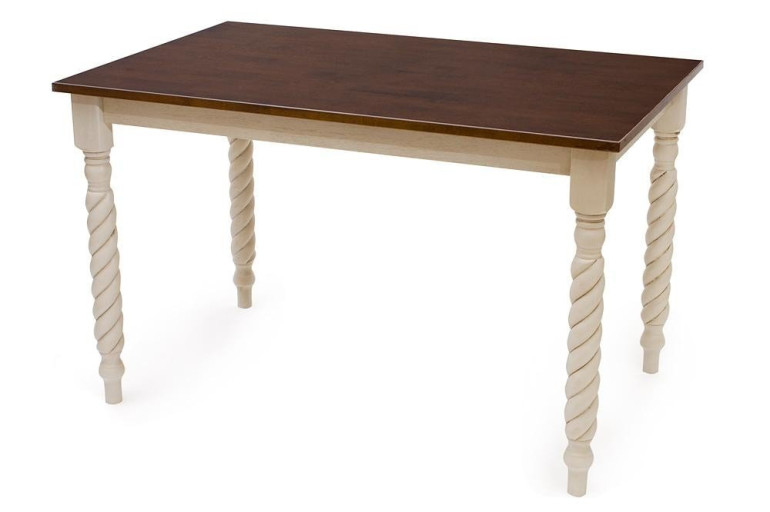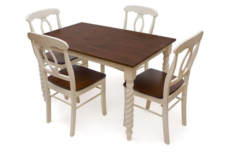 Классический обеденный стол из каучукового дерева (гевеи) "Наполеон" представлен в двух вариантах расцветки темный дуб и белый античный со столешницей в цвете темный дуб. Ручное исполнение оригинальных витых ножек придают модели индивидуальный характер. За столом одновременно можно разместить до шести персон. Стол отличает прочность, которая достигается благодаря гевеи, из которой он изготовлен. Каучуковое дерево позволяет избежать порчи, так как не впитывает воду и запахи.