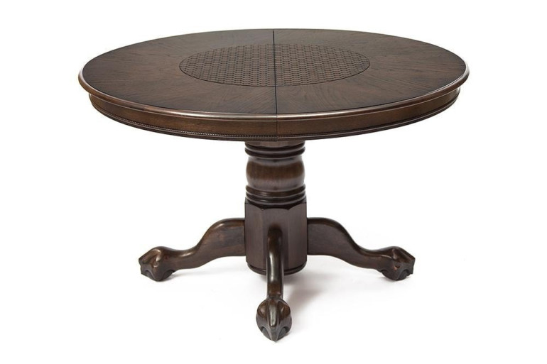 Обеденная коллекция деревянных столов с тремя вариантами декоративного функционального покрытия столешницы из мдф: «ротанг», «камень» и «кожа крокодила». Узор выполнен вручную. Вы можете разместить за столом до 8-ми персон одновременно, благодаря раскладному механизму.