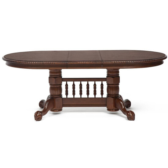 Деревянный обеденный стол, произведенный в Малайзии для Вашему дома. Стол украшен узором, выполненным вручную, оригинальные ножки делают модель необычной и изящной. Благодаря раздвижному механизму стол приобретает повышенную функциональность, за ним можно разместить 8 человек, стоит только только разложить стол. Данная модель эстетична, практична и прочна. Гевея (каучуковое дерево) позволяет избежать порчи, так как не впитывает воду и запахи.