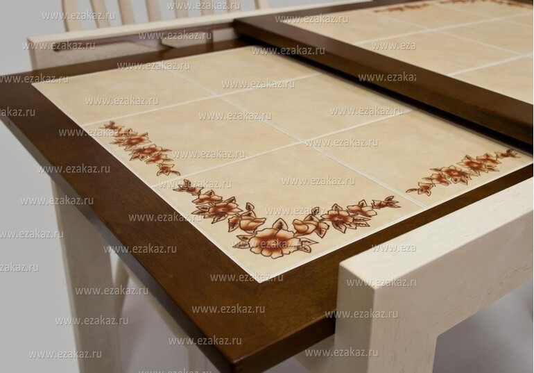 В эстетике и практичности обеденных групп из гевеи сомневаться не приходится. Климат, в котором произрастает гевея — влажные тропические леса. Поэтому кухня, с ее устойчивой влажностью и высокими температурами, не вредит мебели из данной породы дерева. Из гевеи, к слову, готовят и кухонную посуду. Помимо прочной, долговечной основы, данная модель обладает и другими плюсами. Росписная керамическая столешница позволяет разместить на столе горячую посуду без нанесения вреда изделию. Такой стол прост в эксплуатации и не требует особых условий содержания.