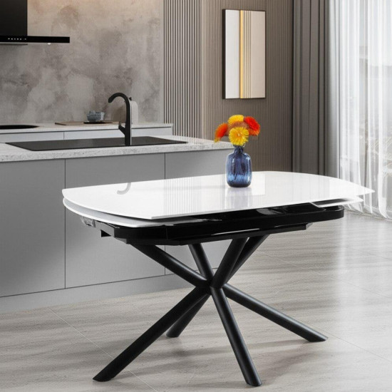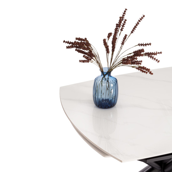 Стол обеденный Winston — это идеальное сочетание современного дизайна и функциональности, которое станет центральным элементом вашей обеденной зоны.Его глянцевая керамическая столешница белого цвета придаёт столу элегантный вид, в то время как черные металлические ножки добавляют стильный и современный акцент. Механизм - поворотно-ротационное раздвижение. За столом удобно разместится от двух до шести человек, что делает его универсальным выбором как для семейных обедов, так и для приема гостей. Изготовленная из керамики толщиной 12 мм столешница отличается прочностью и лёгкостью в уходе, что обеспечивает долговечность и практичность в использовании. Благодаря прямоугольной форме, стол Winston легко вписывается в любые интерьерные стили — от современного до традиционного, идеально подходя для кухни, гостиной или загородного дома. Он не только функционален, но и служит ярким элементом декора, который преобразит и украсит любое пространство, добавляя нотки стиля и комфорта.