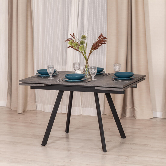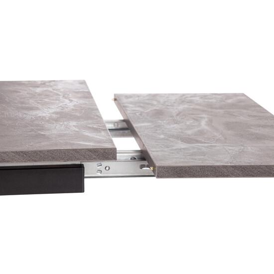 Стол VIGO из коллекции Modern украсит собой любую домашнюю обстановку Стол VIGO отлично подойдёт для гостиной, кухни, столовой или загородного дома. Столешница цвета черная сосна и боковые выдвижные вставки выполнены из ЛДСП толщиной 22 мм на лицевую поверхность которых нанесен защитный слой HPL толщиной 1 мм. HPL имеет защитное покрытие оверлей высокой степени истирания, которое повышает устойчивость поверхностей к повреждениям. Для увеличения площади стола используется боковой механизм выдвижения с двумя вставками с обеих сторон. Прочные черные металлические ножки окрашены порошковой краской. Ножки стола регулируются по высоте для устранения неровности пола. За столом могут разместиться от 4 до 8 человек. Стол прост в сборке, инструкция по сборке прилагается.