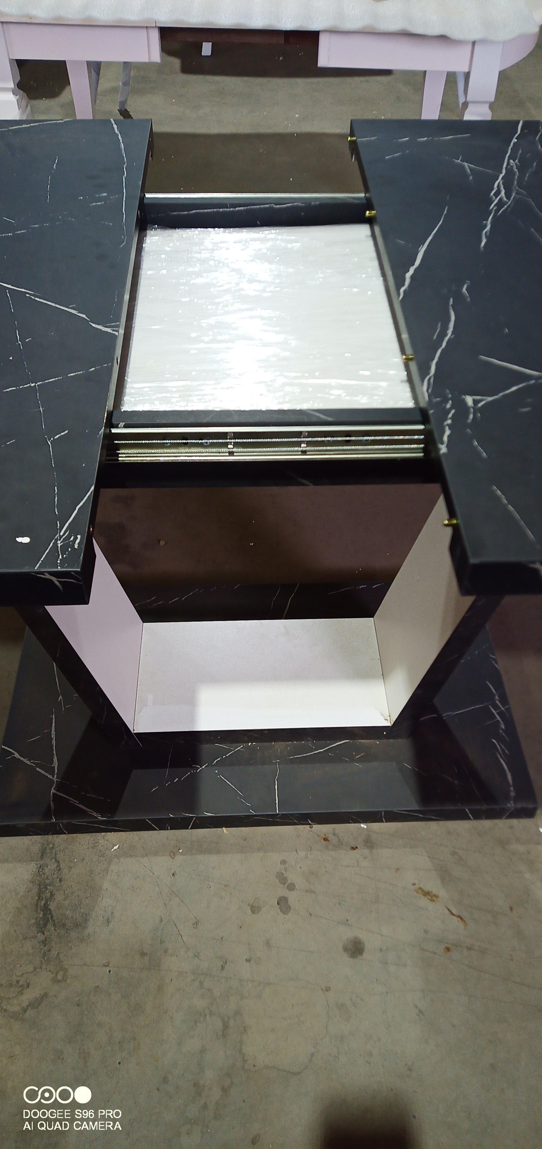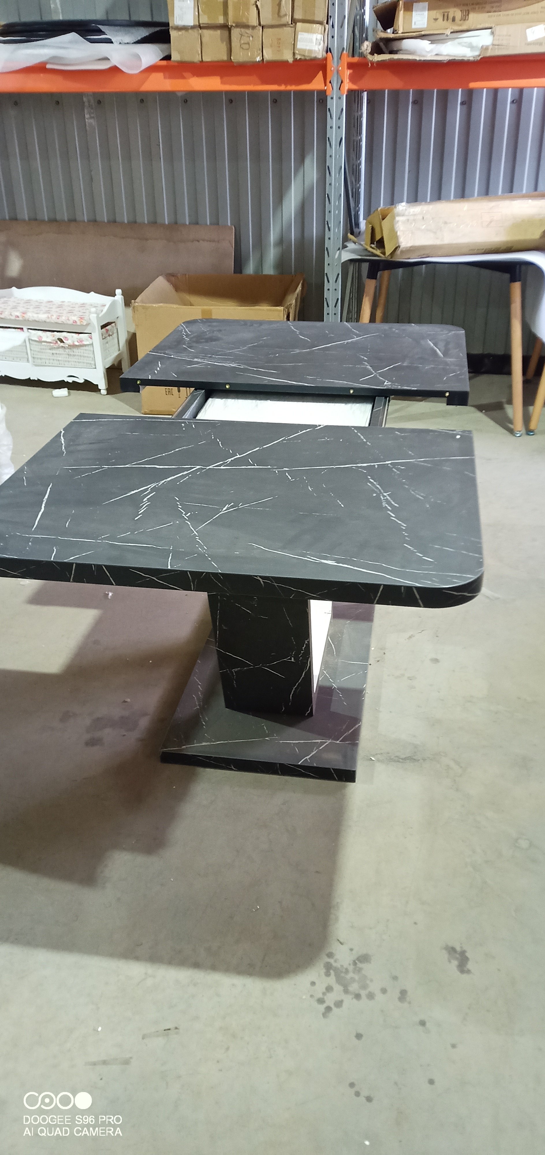 Стол обеденный VOX раздвижной ЛДСП, 132-172x85x75,5 см, Мрамор черный/Белый (уценка)