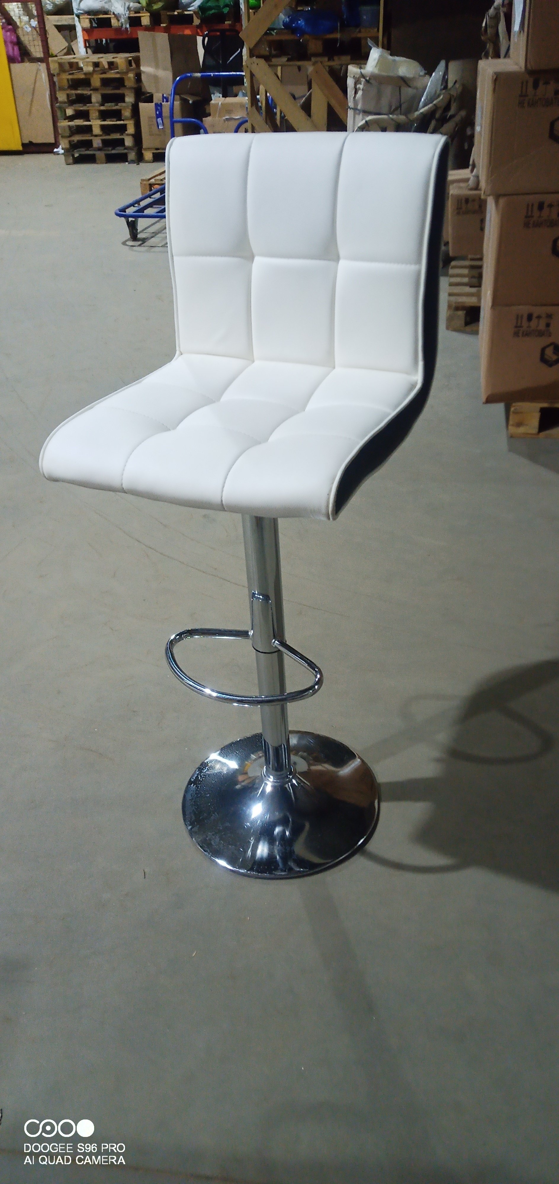 Стул барный BARBER (mod. KY711D) металл/экокожа, 43*50*92-103 см, белый/черный/хром (уценка)