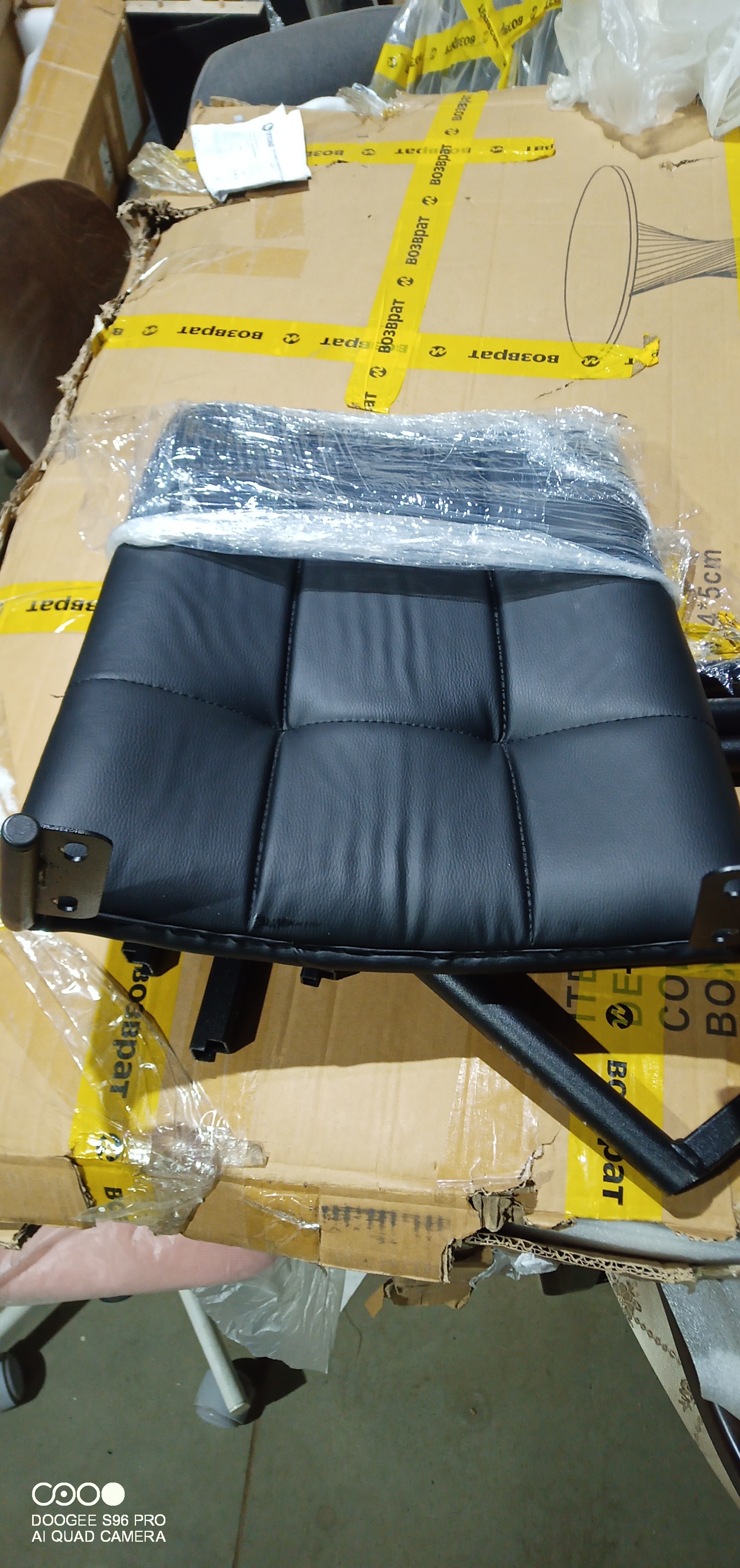 без упаковки. Отсутствует фурнитура, крестовина, повреждения на кож/заме спинки и сиденья